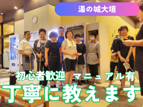 大垣市 養老 湯の城/深夜の短時間☆30代から70代活躍中☆【アルバイト・パート/隙間時間を有効活用♪】 清掃スタッフ 岐阜県大垣市外野2丁目16番 アルバイト・パート 求人の特徴 週 2・3 日から OK 週 3・4 日から OK 週 4 日以上 OK 40 代も応募可 50 代も応募可 60 代も応募可 70 代も応募可 バイトデビュー歓迎 中卒歓迎 主婦・主夫歓迎 学歴不問 未経験者歓迎 経験浅め歓迎 高卒歓迎 履歴書不要 職場見学可 電話で応募・問い合わせ 服装自由 髪型・髪色自由 車通勤 OK 業務内容 ―――――――――――――――――――――― ①未経験スタートが90%以上!清掃マニュアル完備で安心♪ ②20代~70代まで幅広い年齢層の方が活躍中です ③Wワークや扶養内OK!短時間勤務かつ簡単な作業のお仕事です ―――――――――――――――――――――― ●業務内容 大垣天然温泉 湯の城にて清掃業務をおまかせします。 朝礼後、複数名で分担し清掃を行います。 具体的には… ・浴槽、床、ガラスなどの浴場内の清掃 ・サウナ室や化粧台など脱衣場の清掃 ・玄関、ホール内の清掃 ・ロッカーなど備品の清掃 など 清掃後は清掃用具の片づけを行い、最終チェック・終礼(報告事項の共有)を行い、業務終了となります。 ●先輩の声 私は清掃のお仕事は未経験だったのですが、周りのスタッフがとても優しく丁寧にサポートしてくれました。重い物の持ち運びが無いので体への負担も少なく女性や年配の方も安心です。 週末のみの勤務や、家事や育児と両立しながら働いたり、ライフスタイルに合わせて勤務できるので、助かっています。 ・面接は堅苦しいものではないのでご安心下さい♪ ・「まずは話しを聞いてみたい」「見学してから決めたい」という方でもOK! ・少しでもご興味があれば一度ご応募下さい◎ ●電話応募受付中● 0120-922-867 までお問合せ下さい。 「求人を見た」とお伝えいただくとスムーズです。 職種 清掃スタッフ 雇用形態 アルバイト・パート 勤務体系 シフト制 リモートワーク制度 リモートワークなし