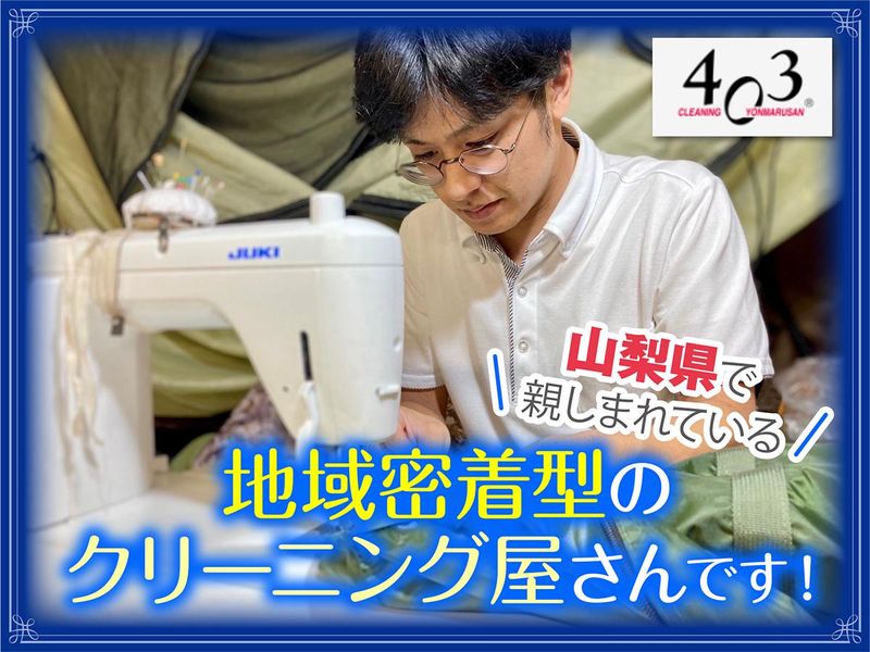 仕事内容 特殊なクリーニング店 ぬいぐるみやテントのクリーニングを 多く扱うクリーニング店です ~店舗数~ 山梨県に30店舗展開! 地元に愛されるクリーニング店を 目指しており、 山梨県内でもトップレベルシェア率を 誇っております* 業績も右肩上がりで安定◎ *....*.....*.....*.....*.....*.....*....* 【オススメPoint】 ①「人のために働きたい」 という思考の方大歓迎◎ お客様のために、 コツコツと日々成長出来る方を 求めています! 現社員の中には、 「自分のため」ではなく、 「人のため」に働きたいという理由で 弊社に入社しています! ②年間休日115日&完全週休2日制 働きやすさ◎ ライフワークバランスを大事にしたい! などもOK ③初から、給与は妥協しなくていい 月給24万円〜、賞与年2回。 「バイトより稼げて、ちゃんと休める」 そう感じて入社を決めた 20代スタッフも多数! ④おしゃれ自由♬ 髪色自由、オフィスネイル、ひげもOK◎ 華美すぎなければ、 ネックレスやピアスなどの アクセサリーもOKです◎ シャツやTシャツの支給があり、 着こなし方は規定に沿っていれば自由! 作業スタッフとして、 自分らしく働ける環境を 大切にしています。 ⑤イベント行事 3ヶ月に一度、 会社行事としてBBQや遠足もあり、 従業員の楽しみになっています! ======= ☘お仕事内容 ======= ◆衣類のアイロン掛け・仕上げ →ワイシャツやスーツなど、 クリーニング後の衣類にアイロンをかけ、 仕上げ作業を行います →アイロン作業も、 資格も必要なしで未経験でも出来る! OJT研修までしっかりあるので安心です! ◆商品の包装作業 →クリーニング済みの衣類を ビニールで包装し、お渡し用にします。 …など、難しい業務はありません! 先輩スタッフが丁寧に指導させて頂きます! 未経験の方でもすぐに慣れていただけます♪ *....*.....*.....*.....*.....*.....*....* ✨はじめての正社員も、ここなら安心✨  ̄ ̄ ̄ ̄ ̄ ̄ ̄ ̄ ̄ ̄ ̄ ̄ ̄ ̄ ̄ ̄ ̄ ̄ 「そろそろちゃんと働きたい」 「でも、いきなり難しい仕事は不安…」 そんな方にこそ、 安心して始められるお仕事です。 最初に覚えることは、 ・衣類の素材と名前 ・アイロンの温度と当て方 ・仕上がりの確認ポイント 特別なスキルや経験は必要なく、 研修で一つひとつ覚えていけます。 実際に、在籍スタッフも 「全員が未経験」からのスタート。 仕事を通して、 少しずつできることを増やし 「自分にもできた」という実感を 積み重ねていける環境です。 *....*.....*.....*.....*.....*.....*....* メディアも注目のクリーニング会社 ■X(旧 Twitter)→@403_net https://x.com/403_net ■Instagram→@cleaning_403 @tentcleaning_403 https://www.instagram.com/cleaning_403 ■facebook→クリーニング403 https://m.facebook.com/cleaning403/ *....*.....*.....*.....*.....*.....*....*