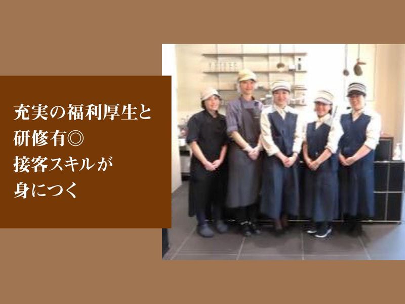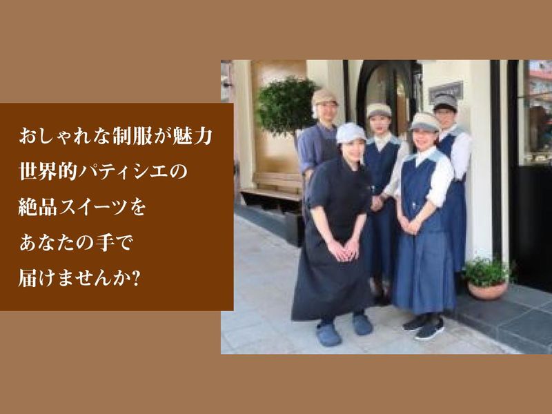 職場環境 20代・30代の女性スタッフが中心で、 みんなスイーツ好き!女性管理職登用実績もあり、 長期キャリアも目指せます。 職人育成も行う本格的な環境のため、 真剣に技術を磨く厨房の横で働く特殊な職場。 本物のプロの世界を間近で見られる貴重な経験ができます。 \スタッフからもお客様からも大好評!のオシャレな制服/ 帽子は地元神戸のブランドを採用。 当店オリジナルの制服は、 海外でも有名なデザイナーが手掛けた、 こだわり抜かれたデザインが自慢です! 中にはこの制服が決め手で入社してくれたスタッフもいるほど!