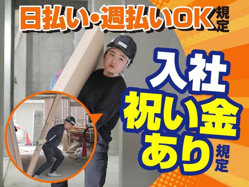 仕事内容 \若手の男女スタッフ活躍中✨/ 建築現場での荷揚げをお任せします! 資材の運搬(荷揚げ):必要な資材を指定の場所へ運びます。 そんなに大変な仕事はナシ。 男性スタッフも女性スタッフも 楽しく仕事をしています♪ ✅即日勤務OK! ✅入社祝い金!(規定あり) ✅平日の週1日~勤務OK! └シフト自由! ✅副業・Wワークも大歓迎! ✅研修あり!未経験でも安心! ✅短期OK! └最短3日~スタート可能! ※原則、ご自宅から現場への直行直帰! (通勤交通費は全額支給!) ⭐部門の一番年上が30代前半⭐  ̄ ̄ ̄ ̄ ̄V ̄ ̄ ̄ ̄ ̄ ̄ ̄ ̄ ̄ ̄ ̄ 10代や20代、30代前半の 若手スタッフが活躍中! 男性も女性も協力して仕事をしており、 月1回程度、みんなで飲みに行くなど、 チームワークも抜群です◎ ⭐2020年設立の若い会社です⭐  ̄ ̄ ̄ ̄ ̄V ̄ ̄ ̄ ̄ ̄ ̄ ̄ ̄ ̄ ̄ ̄ 「人を大切にする」のが社長の方針。 「ここに入社してよかった!」 と社員に思ってもらえるように、 社内制度や働き方を整えてきました! おかげさまで社員の定着率も高く、 それに呼応するように業績も好調♪ その分は社員にしっかり還元します◎ ⇒Point 給与はランクで決まりますが、 ほぼ全員、半年以内でのランクUPを実現! 早い段階で昇給できますよ♪