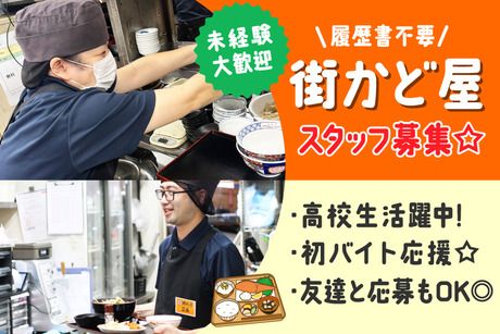 仕事内容 【仕事内容】 <未経験ok♪幅広い世代のstaff活躍中☆> <食事補助あり☆メニュー全品50%off♪> <頑張りに応じて昇給あり☆> <★ホールの仕事内容★> ・配膳 ・食券機のご案内(必要時) ・自動ご飯盛り付け機にご飯の補充・漬物補充 ・テーブル拭き など <★街かど屋のここがオススメ★> ・メインは配膳&バッシング! →レジ作業・注文伺いはほとんどありません☆ 全店食券機配置で出来上がった料理を お客様の元へ運ぶ・退店後に 片付けるという流れになります! ・キッチンさんと連携が取りやすい! →暖簾をくぐって料理を取りに行くスタイルなので 伝言ミスや連携ミスが起きづらい☆ キッチンさんとも仲良く会話できますよ♪ ・勤務中にご飯を食べる場合、メニュー全品50%off →一汁三菜を主とした定食が半額! ご飯もおかわり自由でコスパ最強定食☆ 健康的な食事がしたい方・食べ盛りの方には よりオススメの福利厚生です★