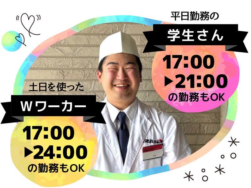 シフト制 勤務時間詳細 ★17:00~22:00 *時間や曜日の相談可能! *週2・3日~、1日4h~ok! *21時~23時の短時間でもOK! *土日・平日のみの勤務もOK! *シフトは2週毎作成で予定も◎ <頑張るスタッフさんの勤務例> ◇平日勤務の大学生さん:17~22時 ◇土日勤務の高校生さん:17~21時 <未経験歓迎> 先輩がイチから丁寧に お教えするので未経験OK! 簡単なことからお教えします。