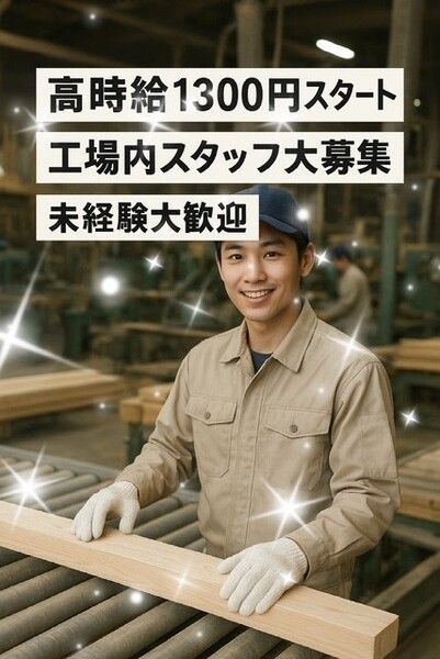 仕事内容 工場内のライン作業スタッフとして、 住宅等で利用される木材の検査や梱包業務をお任せします☆ 未経験からでも活躍できるお仕事です! 20代~40代のスタッフが和気あいあいと働いています☆ ≪詳しい業務内容≫ ・機械で加工された木材が図面通りかどうかをチェック ・確認済み木材の結束/梱包作業(結束バンド使用) ※作業着・安全靴・ヘルメットなどは会社貸与 \\\ 現場見学OK /// 自分にできるか不安・・・ 雰囲気だけでも知りたい・・・ どんな仕事かイメージできない・・・ という方もご安心ください!!!!! 担当スタッフが現場見学に同行し、 実際に作業している風景が見られます★ \こんな方におススメ/ ・未経験から新しい仕事に挑戦したい方 ・プライベートも大切にしたい方、ワークライフバランス重視の方 ・安定した企業で長く勤めたい方 ・チームワークを大切に働きたい方 :+:・-・:+:・-・:+:・-・:+:・-・:+:・-・:+: ~ 応募から入社までの流れ ~ ◆応募 (応募フォームもしくはお電話にてご応募ください。) ↓ ◆お電話にて登録 5~10分程度 (勤務開始希望日や通勤方法、職歴など簡単にヒアリングさせて頂きます) ↓ ◆現場見学 (アイニードの担当が同行して実際の職場を見学します♪) ↓ ◆入社 (★★お仕事スタート★★) :+:・-・:+:・-・:+:・-・:+:・-・:+:・-・:+: \\ アイニードで働くメリット // ◎圧倒的高時給 →どこよりも高い時給でお仕事をご紹介します! ◎福利厚生バッチリ →長く安心して働けますよ♪ ◎サポート体制抜群 →お仕事のことでの相談や質問など LINEや電話でいつでもご連絡ください! いざとなったらいつでも駆けつけます★ ◎日払い週払い可 自分の好きなタイミングでお給料の受け取りが可能! :+:・-・:+:・-・:+:・-・:+:・-・:+:・-・:+: