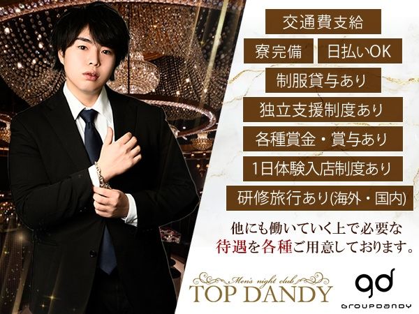 選考について お急ぎの方やご質問があればこちらでも受付中! 【WEB応募】 24時間受付中! 応募後すぐに「自動返送メール」が届きます。 届かない場合は迷惑メールフォルダや受信設定をご確認ください。 【TEL応募・お問い合わせ先】 採用担当直通:03-3200-3150 まずは、お気軽にお電話ください! ※履歴書は不要です! (年齢確認できる身分証だけお持ちいただけるとスムーズです) 応募について 【応募方法】 WEBまたはお電話(03-3200-3150)からお気軽にご応募ください。 【応募先企業名】 TOP DANDY -朝TOP- 【応募先担当者】 採用担当 【応募先住所】 東京都新宿区歌舞伎町2-25-2 荒生ビルB1F