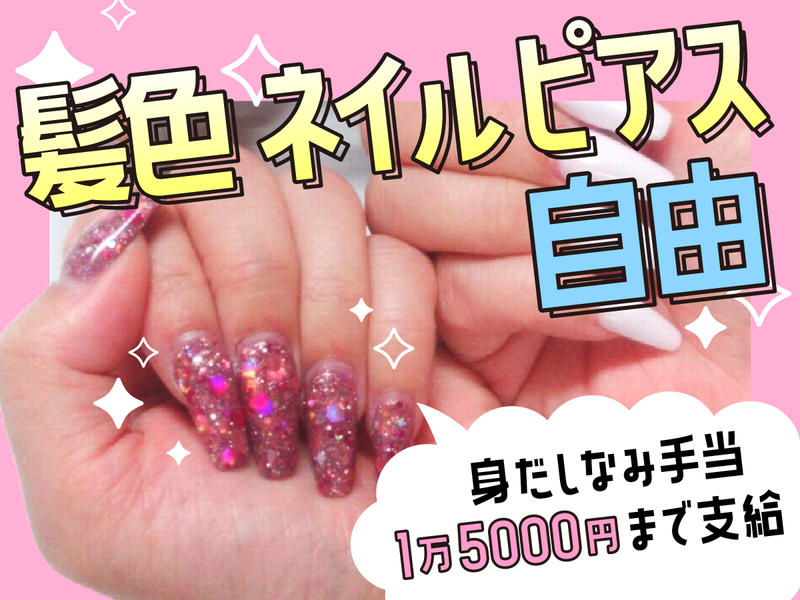 \髪色・ネイル・ピアス自由/身だしなみ手当1万5000円支給