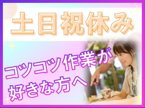 求めている人材 ■学歴・経験一切不問 ■ブランクがある方も歓迎 ✅:必須条件 ━━━━━━━ ◆PCの基本操作ができる方 (文字入力、コピペができればOK) ◆「コツコツ作業」が苦にならない方 ✅:こんな「性分」の方、天職です ━━━━━━━━━━━━━━━━ ■誤字脱字を見つけると つい気になってしまう ■散らかった部屋よりも、 整理整頓された部屋が落ち着く ■「とりあえず」と言われるより 「ルール通りに」と言われたい ■マルチタスクよりも シングルタスクを極めたい 「静かな環境で集中したい」 「接客疲れから解放されたい」 そんな理由で入社した先輩が 多数活躍しています! ✨✨20~40代活躍中✨✨