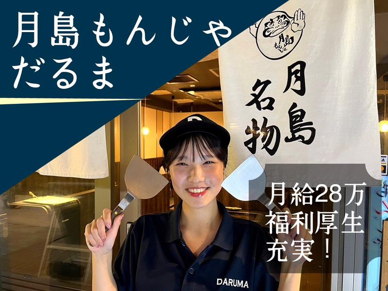 仕事内容 幅広い世代が活躍中! 「人生を楽しくする」キャリアアップも全力応援! “楽しく働く♪”もんじゃ焼き屋 今後の店舗展開を見据えて、新たな仲間を大募集★ "昔ながらの美味しさ"でお客様を楽しませる だるまの正社員を募集! 【各種手当など高水準の待遇】 *手厚い福利厚生 *頑張る分しっかり昇給 *月のお休みも8日or9日で選べる 接客が好き、新しい事をしたいなど どなたも気軽にご応募ください◎ =========== <<注目ポイント>> =========== 古き良き伝統を伝えたい! 同じ目標を持って楽しく働ける人がたくさんの環境がいい! そんなあなたを≪だるま≫は待ってます! 出店計画あり◎ステップアップを応援! 年齢に関係なく、目標達成に向かう姿勢と結果によってキャリアアップを実現していけます。 入社からの下積みと実績があれば、いつでも店長に推薦いたします◎ ★5店舗みんな仲良し★ 社員は30~50代が幅広く活躍!アルバイトは学生がほとんどです。 バーベキューやイベントもあって店舗スタッフの仲の良さが自慢★ 年に1回社員旅行も◎2024年はある国に…! 気になったら面接で聞いてみてください◎ ★充実の研修制度★ 座学研修や先輩サポートでもんじゃ作りも仕事も安心習得◎ ★家賃補助、住宅手当あり★ 借り上げ社宅もあり!新境地の一歩を応援! ★100hお祝い金5000円相当ギフト券贈呈★ 3か月勤続で現金1万贈呈 =========== <<具体的な業務内容>> =========== ■ホール業務 ・お客様のご案内 ・オーダー取り ・ドリンク作成 ・もんじゃ焼き、お好み焼き、デザートの作成 ※お客様との距離も近く一番楽しいし、やりがいあります! ・レジ操作 ■キッチン業務 ・食材仕込み ・盛り付け、調理 ・調理サポート お客さまのテーブルでもんじゃを焼いて、ご提供することは大切なサービスのひとつ。 東京名物のもんじゃ焼きを、たくさんのお客さまに楽しんでいただきましょう♪ 先輩スタッフが丁寧に教えますので未経験でも安心してくださいね◎ あなたも人気店の技を身に付けてもんじゃ焼き名人になってみませんか♪ =========== <<お仕事を覚える流れについて>> =========== もんじゃの上達・ステップアップも手厚いんです◎ \某テーマパーク、カフェ、広告業、美容師、某家具屋など異業種からも幅広く活躍中です/ ■初日~ 一緒に働くスタッフと挨拶をして3時間ほど座学研修です! あとは現場に出ながらスタッフがつきっきりでレクチャー! ■1~2週間後 ドリンク運んだりと簡単な作業がメインです! もんじゃも2~3回作れば上手くできます◎ ≪心機一転!チャレンジ大歓迎!≫ メニュー開発やSNSの運用など、もんじゃを作る以外にも"得意"を活かせます!3ヵ月で店長になったスタッフも◎ まずは自分のペースを作って頂き一緒に頑張りましょう! "もっと頑張る"も"マイペース"もどっちも正解◎ 「やってみよう!」も「うまくいかない…もう1回!」も だるまのスタッフは温かく見守ります! ステップアップしたい方も、チャレンジしたい方も、 どちらも一緒に頑張っていきましょう◎