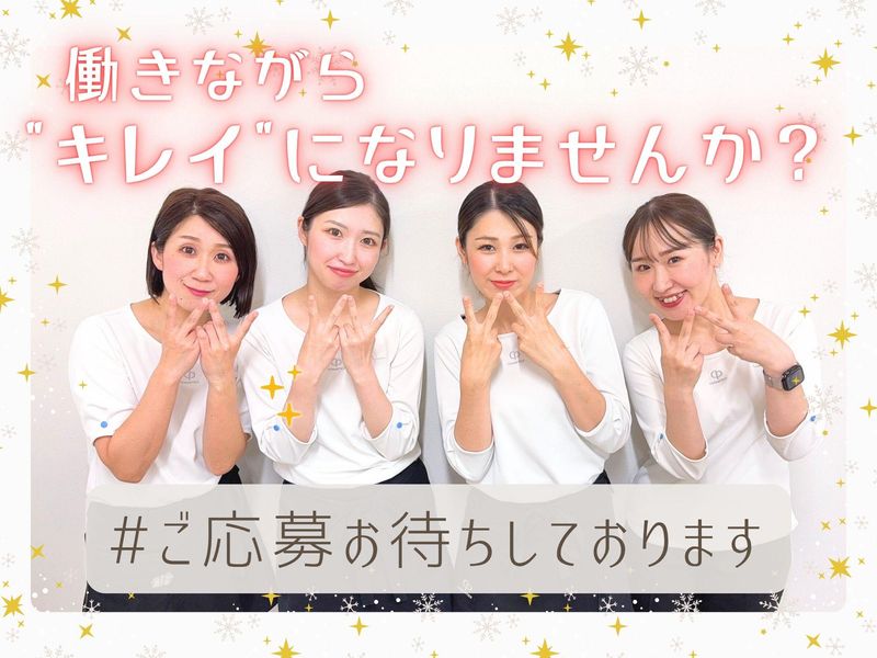 仕事内容 ―――――――――――――**✿ \ 未経験スタートもOK / 「美容のお仕事をやってみたかった」 「お客様のキレイを応援したい」 「美容の知識を深めたい」 そんな方、大歓迎です!! ☆★2026年から始めよう♪★☆ ✿**――――――――――――― フェイシャルエステティックの 施術や接客をお願いします。 ◆お客様のお肌のお手入れ ◆美容アドバイスやカウンセリング ◆サロン内のかんたんな事務作業 など \未経験でも大丈夫!/ 丁寧な研修があるので 安心してスタートできます♪ 美容の知識やスキルが 自然と身につきますよ! *。・*・。*・。*・。*・。* スタッフAさんコメント 「美容の仕事は初めてでしたが、 研修でしっかり学べたので安心でした。 お客様との会話も楽しく、 自分の肌もキレイになっていくのが うれしいです!」 *。・*・。*・。*・。*・。*
