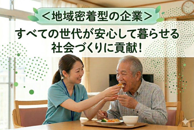 職場環境 ~子どもから高齢者まで 地域の暮らしをトータルサポート~ デイサービス、訪問看護、 障害者グループホーム、 放課後等デイサービスなど、 多岐にわたる福祉サービスを運営 。 地域密着型の企業として、すべての世代が 安心して暮らせる社会づくりに貢献◎