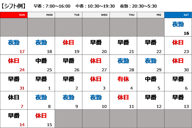勤務時間詳細 実働時間:1日あたり8時間 平均勤務日数:1ヶ月あたり20日 〜 22日 [1]7:00~16:00 [2]10:30~19:30 [3]20:30~5:30 勤務時間は3交替シフト制 ※多少の残業、時間の変動有 契約更新期間:1年(原則更新)