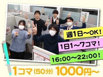 勤務時間詳細 実働時間:1日あたり50分 平均勤務日数:1ヶ月あたり4日 〜 20日 16時~22時(1日1~7コマ) ※週1日~OK ※皆さんの授業日程に合わせたシフト◎ ☆フルタイム歓迎
