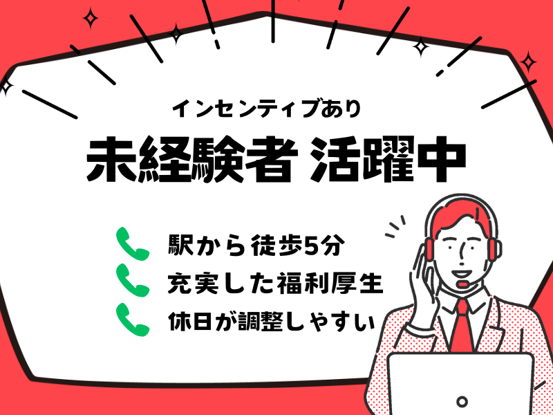 仕事内容 服装/ネイル/ピアス/髪色自由♪未経験から始められるMAX時給2200円コールセンター 【コールセンター・テレフォンオペレーター】 事業拡大のため10名の大量募集中! 最短で即日内定も可◎ メインはご契約者様へのご案内業務 ★頑張りが収入UPにつながる! 当社の評価体制は“頑張りを正当に還元”する仕組み。 昇給・インセンティブ制度もあり、 年2回の時給見直しも行っています。 <仕事内容> 『既にご契約いただいているお客様』を中心に、 定期的な保障内容の見直しや ニーズに応じた保険のご提案をしていただきます。 具体的には… ・「最近お変わりありませんか?」など、 お客様の状況を伺うヒアリング ・ご質問/お申し込み時の対応、ご案内業務 ・送付手続き、簡単な入力 マニュアルがしっかりと完備されている為 未経験の方でも安心してスタートできます◎ <研修制度について> ▼導入研修(1~2週間) 担当商品の知識や ビジネスマナーから学べる研修を実施 →必要な知識やスキルを学べます! ▼配属後 実務研修やOJT、定期研修を実施 →研修を定期受講しながら業務に慣れていただきます。 未経験で入社した方でも、着実にスキルを身に付けていくことができる環境をご用意しているので、成長スピードが速いのも特徴の1つです! ■入社後の研修一覧 ・新人研修(マナー、電話応対、商品・業界知識など) ・eラーニング(病気の知識や話法の勉強など) ・保険資格取得研修(損保や生保、FPなど)※希望者のみ →社員登用制度あり(入社半年後から応相談) <チームで業務を行ないます> 8名前後のチームで働いています! 業務で困ったことなどがあれば 相談やアドバイスし合える環境です。 【アピールポイント】 ◆プライベートを大切にできます! ・年間休日は123日以上 ・シフトは希望制で、希望日の上限なし ※1ヶ月単位での自己申告制 休日の予定が立てやすいから、 私生活との両立のしやすさはバツグン! ◆活躍中のメンバーの多くが未経験スタート! 契約中の方へ、保障内容見直しのご案内がメインとなります。 すでに興味を持った方へのご提案のため ご案内しやすいです。 さらに医療保険のため比較的提案しやすい点もポイント◎ 成果が出やすいため収入アップや キャリアアップのチャンスも豊富です。 【職場の雰囲気】 当社では20代・30代を中心に 若い方が多く活躍しています! というのも、学歴・年齢・性別関係なく、 成果を上げた方をしっかり評価し、 その対価として収入UPや役職をお任せしているからです。 また、コミュニケーションも活発な環境なので、 成功事例や失敗事例などを共有したり、 チームメンバー同士切磋琢磨しながら働けるのもポイントです。 オンオフをしっかりつけられる働き方なので、 仕事とプライベート、どちらも充実させることができます◎