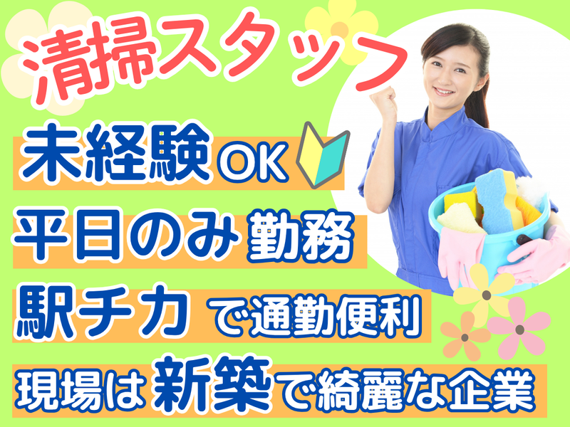 仕事内容 新施設!オープニングスタッフ募集!! 平日7:30~15:30の勤務♪ 家事の延長上で活躍できるオシゴト✨ 力仕事はナシ!未経験でも安心◎ ▼▽▼ ご応募はお気軽に ▼▽▼ TEL【044-822-7365/担当006】まで! ――――――――――――――――――― 【仕事内容】 <11月に完成した綺麗な建物の清掃> 廊下・エレベーター・階段・ 執務室・食堂・トイレ等の ✅掃除機掛け ✅モップでの拭き掃除 ✅施設内の落ち葉掃きをお任せします。 ※女子トイレ清掃あり ⭐清掃未経験から活躍できます! 使用するのは基本的な清掃用具のみ。 複雑な機械操作などは行いません◎ ⭐細やかなフォローで定着率抜群! 困ったことも相談しやすいように、 コミュニケーションを大切にしています。 ⭐現在活躍中のスタッフさんは、 「体を適度に動かして働きたい」 「社会とのつながりを保っておきたい」 「子育てが落ち着いたから働きたい」 「家から近いから」 …などの理由で働いています♪