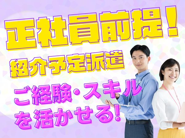 選考フロー 1)まずは「応募する」ボタンを押してください♪ ※必要項目を入力して応募完了です! 2)弊社からお電話またはメールにて ご連絡いたします。 3)電話面談・お仕事情報のご紹介 ※あなたにマッチしたお仕事を紹介するために、 お仕事のご経験やご希望を詳しく お聞かせください♪ 4)来社またはオンラインにて登録 ※選考に進めそうか企業確認をした後、 弊社にご登録いただきます。 5)企業による選考 (面接・筆記試験・適性検査など) ※可能であれば、弊社担当が 面接にも同行させていただきます。 6)内定・入社 ※面接結果は弊社より連絡させていただきます。 入社日は、求職者の方と企業側のスケジュールを 調整した上で決定します。 入社後もフォローいたしますので、 お気軽にご相談ください。