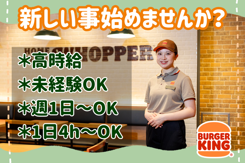 仕事内容 \完全裏方!盛り付けスタッフ大募集/ \\バーガーキング松阪市初上陸// 2025年春にオープンしたばかりのお店です。 ━━━━━━━━━━━━ オススメPOINT◎ ━━━━━━━━━━━━ *高時給のお仕事! <土日祝時給1250円!> *週1~5日まで、1日4h~勤務OK! *未経験・ブランクOK! *バーガーキングファン必見の社割あり! 自慢のメニューが30%オフ☆ メニューをお得に食べて、 美味しく楽しく勤務♪ ━━━━━━━━━━━━ 仕事の詳細 ━━━━━━━━━━━━ ・食材のカットやバンズに詰める作業 などの調理補助 ・ハンバーガーやサイドメニュー、 ドリンク作り ・オープンやクローズ時の 簡単な店内清掃作業 *丁寧なマニュアルと先輩がサポートして くれるので安心して働けます♪ 普段は料理をしないという方でも 大丈夫です! ━━━━━━━━━━━━━━ 土日勤務できる方大募集 ━━━━━━━━━━━━━━ ★★土日祝は時給UP★★ 効率よく稼ぎたいあなたにピッタリ! 平日は授業やサークル優先、 土日祝の空いた時間にサクッと稼ぎたい 学生さん大歓迎です♪ 本業がお休みの土日祝に働きたい Wワーカーさんにもぴったり! ━━━━━━━━━━━━━━ お仕事復帰も歓迎 ━━━━━━━━━━━━━━ バーガーキングでは、お昼は主婦(夫)の方や 子育てから仕事復帰したスタッフが、 夜は学生さんやフリーターさんが活躍中! ブランクや経験年数は不問で、復帰を考えている方歓迎! 笑顔で明るい対応ができる方をお待ちしています。 ━━━━━━━━━━━━━ バーガーキングについて ━━━━━━━━━━━━━ バーガーキングでは、お客様を <笑顔>にするために スタッフ一人ひとりが<笑顔>で接客する 事を大切にしています。 商品の提供を通してお客様を 笑顔にする事はもちろんですが、 そのためにはまず、スタッフの笑顔が 欠かせないと考えております。 ━━━━━━━━━━━━ 事業内容 ━━━━━━━━━━━━ ハンバーガーチェーン・バーガーキングなどの飲食店運営