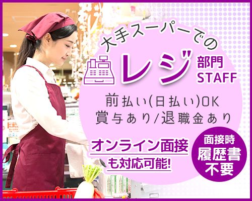 <オンライン面接OK>夕方から働けるスーパーのレジスタッフ♪未経験でも時給1,750円スタート!