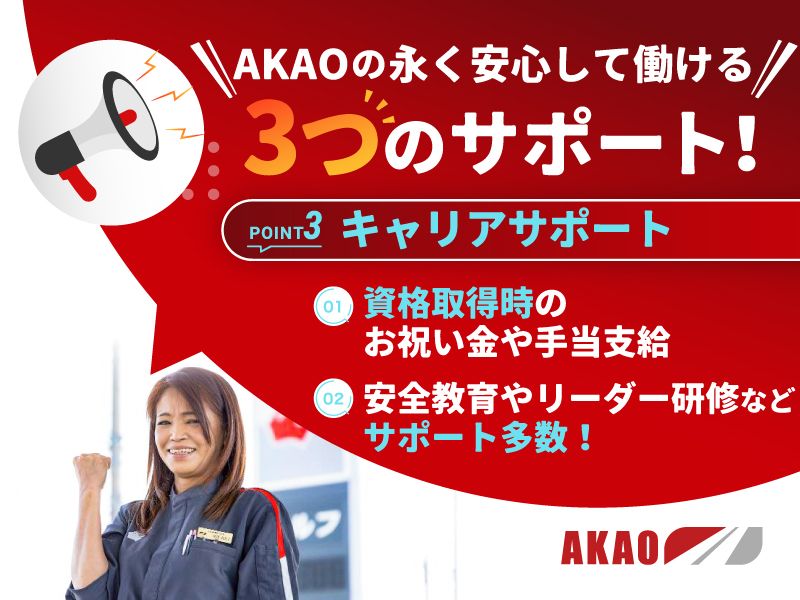 仕事内容: フルサービスガソリンスタンドでのお仕事です! <具体的には> ▶ガソリンの給油 ▶灯油の販売 ▶整備・車検の受付 ▶オイル・タイヤなど関連商品のご説明・販売 ▶洗車 ▶清掃 などがメインのお仕事です。 ❑❑❑❑❑❑ 土日休みではありませんが、週休2日しっかり 休めます!この4月から年間休日120日になりました! <入社後の流れ> まずは簡単な業務から徐々に覚えていきます。 先輩スタッフがしっかりサポートします! 不安な時は、何でも相談してくださいね♪ ╭━━━━━━━━━━━━━━━╮ 数字で分かる、AKAOグループのご紹介 ╰━━━ v ━━━━━━━━━━━╯ *「120」:2026年4月から、年間休日を120日! *「12日」:有給休暇取得の平均日数 *「20時間」:月の平均残業時間 *「75%」:入社5年未満の若手社員定着率 *「160名と16年」:社員数160名以上、平均勤続年数16年 *「79%:21%」:男女比 *「年代割合は20代が11%、30代が20%、40代が31%、50代が28%、60代が10%」 *「160.9億円」2025年3月期の売上高実績 *「74年」:創業以来、74年連続黒字経営(まもなく創業75周年) *「2000社」:取引先は2000社以上 ---------------------------- ➡応募前のご質問も受付中! 【027-323-4884】総務課:宮川まで お問い合わせ下さい。 ---------------------------- 【雇用形態】 正社員