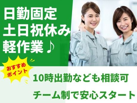 仕事内容 【仕事内容】 \出品準備から撮影・梱包まで♪チームで協力するお仕事/ ◎──────────────────────────◎ 家電や雑貨などをキレイにして写真を撮るだけ♪ マニュアルありで、未経験でも安心スタート◎ ◎──────────────────────────◎ 《WEBオークション用の入庫・仕分け・撮影・梱包作業》 ◇仕事内容 オークションサイトへ出品する商品の準備を行う軽作業です。 商品は家電・雑貨・陶器などさまざまで、扱いやすいサイズが中心。 ・届いた商品のバーコードを読み取って入庫処理 ・電源が入るかなどの動作確認や汚れのふき取り ・商品状態を見てランク分け ・商品の撮影(1商品につき7~10枚程度) ・撮影後の商品の梱包作業 どれもマニュアルがあり、先輩が丁寧に教えてくれるので、初めてでも安心! まずは梱包や動作チェックから始めて、徐々に覚えていきます。 ◇職場環境 ・10名ほどのチーム制で、助け合いながら進める職場♪ ・重たい荷物は2人以上で対応◎ ・20代~40代のスタッフが活躍中! ・1ヶ月ほどで一通りの作業ができるようになります♪ ◇この仕事の魅力 ・日勤のみ&土日祝休みでメリハリ◎ ・シフト調整しやすい♪10時出勤なども相談OK ・コツコツ作業や写真を撮るのが好きな方に最適 ・扱う商品は毎日ちがって新鮮!飽きずに続けられます あなたのペースに合わせて仕事をお任せしていきます。 まずはお気軽にご応募ください♪ (雇入れ直後)上記のとおり (変更の範囲)会社の定める業務 【アピールポイント】 【姫路市】入庫・仕分け・撮影業務/時給1,200円/未経験歓迎/日勤/土日祝休み 【こんな方にオススメ】 ・軽作業未経験の方 ・パート・アルバイト・派遣のお仕事をお探しの方 ・フォークリフト免許をお持ちの方 ・高収入・高時給のお仕事をお探しの方 ・コンビニ・スーパー・飲食店・ファストフード店での勤務経験を活かしたい方 ・商品検品・仕分け・ピッキングなどの倉庫内作業の経験を活かしたい方 ・箱詰め・ラベル貼り・シール貼りなどのコツコツもくもく軽作業の経験を活かしたい方 ・梱包・包装・組立・加工などの工場製造の経験を活かしたい方 ・検査・充填・品出しなどの機械オペレータの経験を活かしたい方 ・食品工場(肉・鮮魚・野菜・惣菜)での盛り付け・調理・材料カットの経験を活かしたい方 ・カンタン作業・ライン作業の経験を活かしたい方 ・黙々(モクモク)と進められる仕事がしたい方
