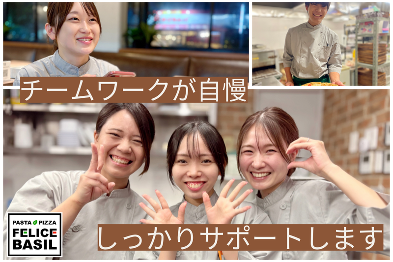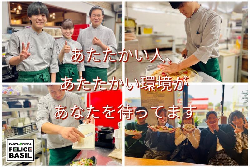 仕事内容 ✨リニューアルオープンしたばかり✨ ランチのホールスタッフを増員募集します!! バイトデビューの学生さんや、 子育てママさんにもピッタリです◎ ╭━━━━━━━━━━━━━━━━━╮ ✅賄いあり!持ち帰りもできる! ✅シフトも柔軟に対応♪ ✅髪色・髪型自由でオシャレもOK♪ ╰━v━━━━━━━━━━━━━━━╯ 福利厚生も充実しています!! 未経験の方や初バイトの方も大歓迎です♪ 【仕事内容】 ピザ&パスタ専門店のホールスタッフとして、 下記の業務をお願いします! 具体的には… ●お客様を席へご案内 ●オーダー取り ●料理やドリンクの提供 ●お会計 ●片付け など。 ⏩まずは笑顔で明るい対応ができれば 未経験の方でも大丈夫です◎ ⏩仕事の流れは研修を通して徐々に覚えていってください。 先輩がイチから丁寧に教えます◎ ⏩作業内容はシンプルなので、 覚えてしまえばスムーズにお仕事ができます◎ \✨注目ポイントはココ✨/  ̄ ̄ ̄ ̄ ̄ ̄ ̄ ̄ ̄ ̄ ̄ ̄ ̄ ̄ ✅嬉しいピザ&パスタのまかない! まかないはなんと持ち帰りもOK★ 急いで帰らないといけない方も安心してください♪ ✅シフトの柔軟性も抜群! 週2日~勤務相談OKなのでかけもちや子育て中の方も無理なく始められます! 現に子育て中の方からも好評です♪ ✅自分らしく働ける! 清潔感があれば髪色・髪型は自由です♪ オシャレも楽しみながらお仕事ができます! ✅研修制度も充実! 未経験の方も安心して働いていただけます◎ いきなりホールに出て!ということはありません。 接客スキルやマナーも身につきますよ♪ ✅働きやすい環境作りに取り組み中! スタッフの皆さんが安心して 長く働けるように環境作りに力を入れています★ 具体的には、まかないが有りになったり昇進制度を作って時給アップをしたりなどなど。 みなさんの要望や意見を取り入れ働きやすい環境を一緒に作っていけたらと思います♪ \✨フェリーチェバジル✨/  ̄ ̄ ̄ ̄ ̄ ̄ ̄ ̄ ̄ ̄ ̄ ̄ ̄ ̄ 30年間地元で愛され続けるピザとパスタの専門店! 店内は木の温もりを感じる落ち着いた雰囲気です◎ ランチやディナー、女子会、誕生日・記念日のお祝いなど、さまざまなシーンでご利用いただいています♪ \✨第一経済大学生Aさんにインタビュー✨/  ̄ ̄ ̄ ̄ ̄ ̄ ̄ ̄ ̄ ̄ ̄ ̄ ̄ ̄ ̄ ̄ ̄ ̄ ̄ ̄ Q.フェリーチェで働こうと思ったきっかけは? A.家から近く、食べに行った時に素敵な店員さんがいたので♪ Q.フェリーチェで働いてやりがいを感じる時は? A.お客様との会話でありがとうやまた来るねと言われた時! Q.フェリーチェで働いて成長したことは? A.調理の技術が上がったことや笑顔でお客様と楽しく話せるようになったことです。 ⭐フェリーチェの応募者へのメッセージ⭐ 私は飲食店の勤務が初めてだったので最初はかなり緊張しました。 ですが研修もあり、社員さん方も優しく教えてくださったので安心して取り組めました。 是非一緒に楽しく働きましょう♪