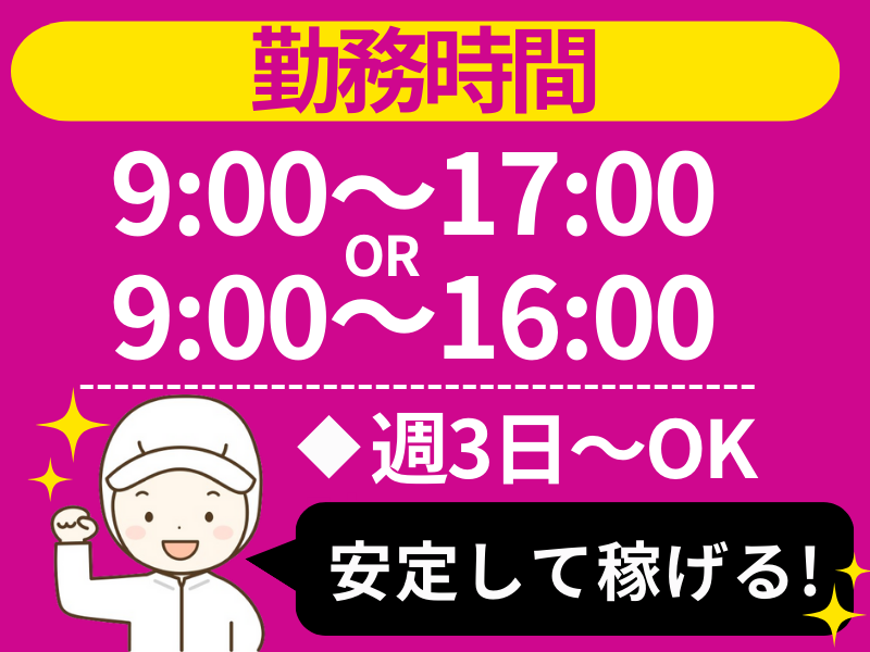充実の福利厚生!難しい作業なし◎週3日~無理なく働ける◎