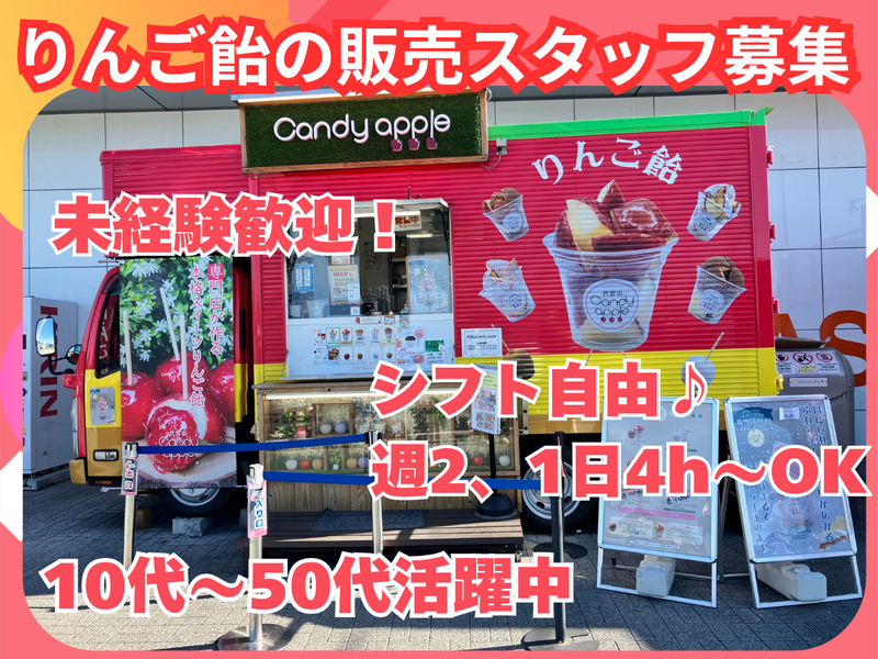 仕事内容 ☆candy apple☆ テレビやSNSで話題の ≪カワイイりんご飴の専門店≫ 定番フレーバーをはじめ、 季節限定商品など、 りんご飴だけでも様々なメニューがあります♪ 【求人のポイント】 ✅シフト自由 ✅WワークOK‼ ✅研修ありで未経験でも安心 ✅ネイルOK、髪型自由 ✅平日のみ 土日のみでも大歓迎! ✅週2日、1日4時間~勤務可能‼ ◎1日4時間~OKで勤務時間の幅が広く、 シフトの融通が利きやすい環境です。 授業終わりに働きたい学生さんや、 スキマ時間を活用したい主婦(夫)さん・Wワーカーさんが 多数活躍しています! 【主な仕事内容】 ✅りんご飴造り ➥先輩スタッフが丁寧に教えるので 未経験の方でもすぐに慣れます‼ ✅接客・販売 ➥レジ打ちや梱包などしていただきます♪ ✅清掃等 ➥キッチンやフロアの床など 水洗いなどして清潔に保ちます‼ \スタッフの声/ (20代・学生) 「初めてのバイトで不安でしたが、 先輩が優しく教えてくれてすぐ慣れました! シフトも相談しやすくて助かってます◎」 (20代・フリーター) 「お客さんが多くて忙しいですが、 その分時間があっという間に過ぎます!」 (40代・主婦) 「シフトの融通が利くので、 家庭と両立しながら無理なく続けられています!」 \お店の雰囲気について/ ・全体で15名~20名ほど在籍 ・複数人(3~4名)での勤務中心で安心 ・10代~50代まで幅広く活躍中 ・未経験スタートがほとんどで馴染みやすい