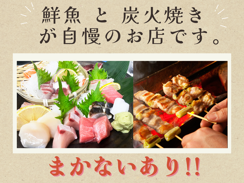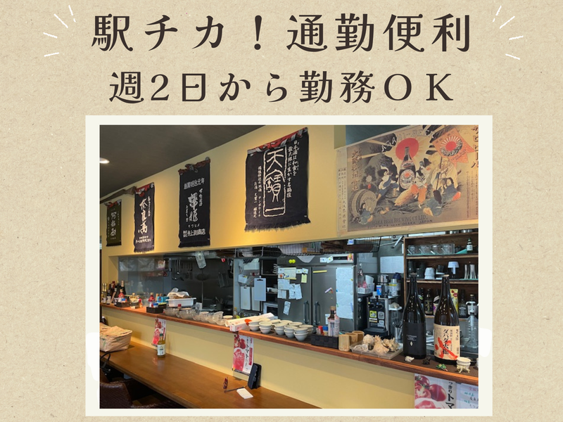 仕事内容 / 鮮魚と炭火焼きが自慢の居酒屋 キッチンスタッフ大募集! \ 調理全般をお願いします。 作り方はオーナーが 丁寧に教えますので 一緒にお店を盛り上げていきましょう。 *社員登用制度もあり →まずはフルタイムでスタート♪ →将来独立したい方も大歓迎! *-*-*ここがポイント*-*-* ・通勤ラクラク!駅チカ  ̄ ̄ ̄ ̄ ̄ ̄ ̄ ̄ ̄ ̄ ・週1、2日~OK  ̄ ̄ ̄ ̄ ̄ ̄ ̄ ・新鮮な海鮮丼を食べれることも!  ̄ ̄ ̄ ̄ ̄ ̄ ̄ ̄ ̄ ̄ ̄ ̄ ̄ ̄ ̄ ・暇な日の短時間上がりもナシ  ̄ ̄ ̄ ̄ ̄ ̄ ̄ ̄ ̄ ̄ ̄ ̄ ̄ ・ホールスタッフ希望の方もOK!採用枠あり  ̄ ̄ ̄ ̄ ̄ ̄ ̄ ̄ ̄ ̄ ̄ ̄ ̄ ̄ ̄ ̄ ̄ ̄ ̄ ̄ ̄