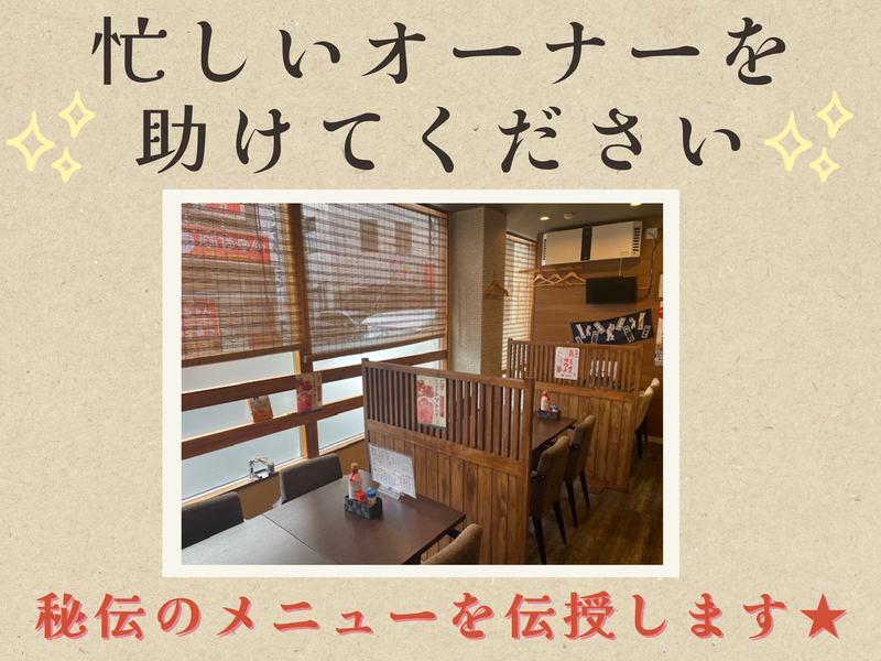 求めている人材 ◎調理経験がある方 ◎料理が好きな方 ◎好きを仕事にしたい方 ◎居酒屋メニューを覚えたい方 ◎飲食業界で働きたい方 ◎将来独立してお店を持ちたい方 ☆現在、オーナーが一人で 料理を作っています。 おかげ様で業績好調につき オーナーの右腕を募集します(笑) 人気の居酒屋メニューの作り方を 完全マスターしてください♪ 【こんな経験がある方にもオススメ!】 調理、居酒屋、飲食店、レストラン