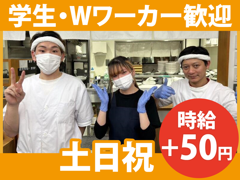 仕事内容 ★ 第二期オープニングスタッフ募集 ★ ・川崎駅スグ!9月中旬にOPEN「中華そば」 ・店内はカウンター6席の落ち着き空間♪ ・ついに夜の時間の営業もスタート!! ・未経験・バイトデビューも多数入店中 ・学生バイトやWワーカーが活躍中!! ◇ ◇ ◇ ★ 仕事内容 ★ *お客様のご案内 *食券でのご注文確認 *簡単な盛り付け・ご提供 *テーブルの片付け *洗い場(皿洗い) など 食券制でレジ対応は一切なし! 簡単な作業ばかりなので 慣れてきたらスピード感をもって こなせるようになりますよ♪ ◇ ◇ ◇ ★ 待遇充実!当店の魅力を紹介 ★ [Point1] 美味しいラーメンがまかないで! ◎1食165円でお財布にも優しい ◎バイトの楽しみは、美味しいご飯も セットです♪ [Point2] 嬉しい特典で+αの収入も! ◎友達と一緒にバイトデビューもOK! ◎友達紹介で5万円プレゼント♪ [Point3] 頑張りはしっかり評価! ◎土日祝の勤務は時給50円UP! ◎頑張り次第で昇給も可能です! ◎シングルマザー・ファザーは時給50円UP! ―――――――――――――――――――― ■ネット応募方法 ・「応募画面へ進む」をクリック ・必須項目を入力 ・応募完了! ■電話応募 044-211-6633
