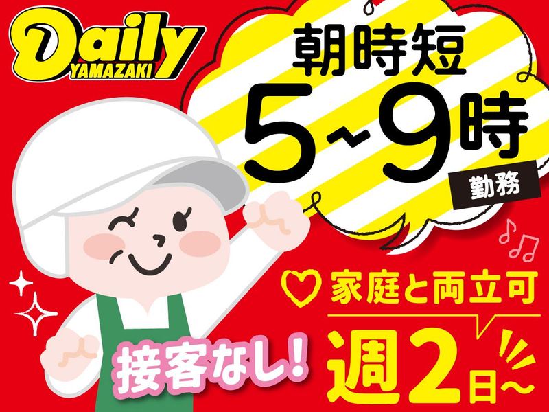 仕事内容 \ 当求人のポイント / ✅1日4hの短時間!週2日~OK♪ ✅午前中に仕事が終わります ✅接客なしのモクモク作業✨ ✅家事・育児との両立もさせやすい! ✅近隣から通う主婦さんが多数! ✅車・バイク通勤OK! * * * [仕事内容] デイリーヤマザキ (コンビニ) の キッチンでパン・お弁当・ おにぎりの製造をお願いします! 調理業務が初めてでも大丈夫! マニュアルも完備しており安心♪ 簡単なモクモク・コツコツ作業なので 心配は要りません! また、接客が無いため 気楽にスタートできます◎ ―――――――――――――――――