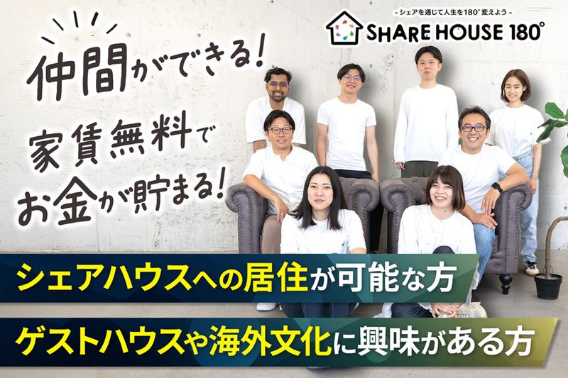 【仕事内容】 ■会社運営のシェアハウスで二拠点生活■ 今回はシェアハウスの企画運営スタッフを募集です!最近注目を集めている二拠点生活を、なんと会社からお願いする形で実現できますよ! 名古屋~東京・東京~札幌のシェアハウス行き来しながら、二拠点生活できるアクティブなお仕事です! ※基本は3ヶ月~半年程度の期間 ※住居(シェアハウス )提供あり! 住宅費はもちろんずっと無料!憧れのシェアハウス暮らしや二拠点生活を働きながら叶えてみませんか? 【主な仕事内容】 シェアハウスの運営に関わるお仕事をメインでお任せいたします。もちろん、一人でやる業務ではなく、別スタッフとも協力して行います。 ・お客さまからの問合せ対応 ・内覧案内(zoom内覧含む)、契約業務 ・入退去業務 ・シェアハウス巡回業務 ・シェアハウスの企画補佐 ・施設運営管理(定期的にシェアハウスを巡回) ・広報活動(ブログ・SNS・HP等) など 【働きながらシェアハウスに住める!】 今回のお仕事は、弊社シェアハウスへの居住が条件となっております! 住宅費は、本人が希望すればずっと無料です!(水光熱費:別途負担) ※居住は最低1年間必須です。 私たち社員は、暮らし・コミュニティーをより良くするため、入居者さんと一緒にシェアハウスに住み、様々な体験経験を共にします。 私たちがが関わることでどんな変化をもたらせるか?を日々考え、会社として、個人として動いていただきます。 人の暮らしに密着する仕事だからこそ、大変なことも多いです。しかし、その分やりがいも多く、もちろん、手当も支給しています。 ※ただし、会社から合格基準を貰えれば、最短1年間で別の住まい(パートナーと共に住む、ひとり暮らしをする等)を選択することも可能。 居住の基準をクリアした社員には、引き続きシェアハウスに居住する場合は日当手当を支給します。(日当1,000円/日 滞在報告あり) また、別の住まいに住みながらシェアハウスへ宿泊することも可能な為、月の半分はシェアハウス暮らしといった選択も可能です。宿泊した日数分の日当を手当を支給します。 ※15日間宿泊した場合は、1,000円×15日分=15,000円を支給 シェアハウスに興味のある方もご応募下さい! 【こんな方におすすめ!】 ■人との交流が好きな方 ■空気を読むのが得意な方 ■弊社の理念に共感してくれる方 ■人を楽しませることが好きな方 ■日常の英会話ができ、英語力を生かしたい方。国内にいながら英語経験を積みたい方 ■シェアハウスに住んだ経験のある方 ■シェアハウスの経営、運営マネジメントに興味がある方。 ■新しい事に挑戦をすることが好きな方。 ▶▶当社について▶▶ 「シェアで変わる人生がある」 私たちはそう信じ、この想いの基にシェアハウスの企画~運営までを行っています。 愛知県名古屋市を中心に、ご紹介・運営管理するシェアハウスは南は大阪から始まり、神奈川・東京・千葉・埼玉、金沢・札幌まで拡大中です。 【求人ID-TME】