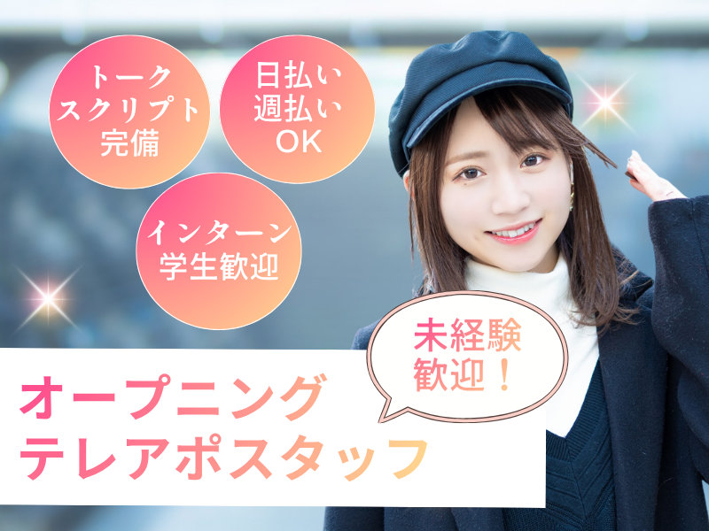 仕事内容: \3/1〜新事務所オープニング募集!/ 「ガクチカ、何を書けばいいか わからない…」 そんな学生さんに ぴったりのバイトがここにある◎ テレアポを通じて 営業力・コミュニケーション力が身につき、 就活面接で "具体的なエピソード"として 語れる経験が積めます♩ ▼仕事内容 ・お客様へのご案内 ・トーク改善 ・成果データの振り返り ‥‥‥‥‥‥‥‥‥‥‥‥‥‥‥ \このバイトが"ガクチカになる理由"/ ■① 数字で語れる「実績」が残る ■② フィードバックで"成長"が加速する ■③ 同世代と切磋琢磨できる ▷ ただのバイトではなく 「成長と実績を積む インターン型バイト」です ‥‥‥‥‥‥‥‥‥‥‥‥‥‥‥ テレアポは今も主流の営業手法。 学生のうちに経験しておくことで、 新卒入社後のスタートダッシュに 大きく差がつきます◎ 面接でも 「テレアポで〇件アポを取りました」 「断られても改善し続けました」 など、 就活面接で話せる リアルなエピソードが積めます✨ ‥‥‥‥‥‥‥‥‥‥‥‥‥‥‥ ✅ 営業力が身につく ✅ 就活で評価される経験が積める ✅ 同世代と成長できる環境 ✅ 髪色・ネイル・服装自由 ✅ オープニングで 人間関係ゼロからスタート ‥‥‥‥‥‥‥‥‥‥‥‥‥‥‥ ◎安心して始められる環境です マニュアル& トークスクリプトが 完備されているから安心◎