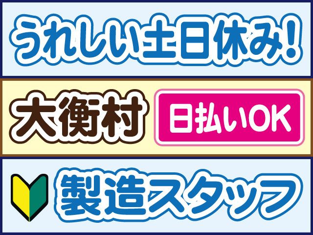 仕事内容 急募、稼げる人気の工場内製造スタッフ大募集 自動車シートの組立や樹脂の成型のお仕事 未経験OK、初心者の方も安心して始められます 働きやすい土日休み、20代~50代の男女活躍中 【工場内製造スタッフのポイント】 〇自動車用シートの組立と樹脂の成型 〇未経験OK 〇作業は難しくありません 〇塚目駅より車で24分 〇2交替(8:00~16:50・20:00~翌4:50) 〇土日休み(会社カレンダー) 〇ブランクのある方もOK 〇プライベートとの両立も可能 〇20代・30代・40代・50代の男女活躍中 〇日払いOK(規定内) 〇職場見学OK(30分~1時間程度) 〇履歴書不要 【工場内製造スタッフの仕事内容】 稼げる、未経験OKのお仕事 黒川郡大衡村にある自動車部品の 製造を行う企業でのお仕事です。 具体的には… 自動車用シートの組立と 樹脂の成型をお願いします! 作業は難しくないので未経験OK 土日休みなので、 プライベートとの両立も可能です 事前に職場見学もございます 少しでも気になったら、 お気軽ご応募ください 【勤務について】 〇2交替(8:00~16:50・20:00~翌4:50) 〇土日休み(会社カレンダー) 急な発熱・体調不良・冠婚葬祭など、 突発的なお休みに柔軟に対応しております。 【経験活かせます!】 〇工場内作業パート・アルバイト 〇工場内軽作業ピッキングパート・アルバイト 〇工場内仕分けパート・アルバイト 〇倉庫内ピッキング派遣社員 ブランクある方もOKです! 工場内作業や仕分け・ピッキングなどの 経験を活かして働けます! コーディネーター・定着支援のWサポート体制導入 「マイリク定着支援」導入企業! アンケートで職場の様子を確認し、 コーディネーター・定着支援担当が連携してサポート。 はじめての派遣でも安心して働けるよう迅速かつ 丁寧にサポート対応いたします。 ご不明な点はお気軽にお問い合わせください。 お電話でのご応募、ご質問も受付中! 株式会社ロフティー 仙台支店 担当営業、または採用担当まで TEL022-352-5330(スタッフ採用担当まで) TEL0800-222-6888(フリーダイヤル) 求人情報はコチラ https://entori.jp/lofty-sendai