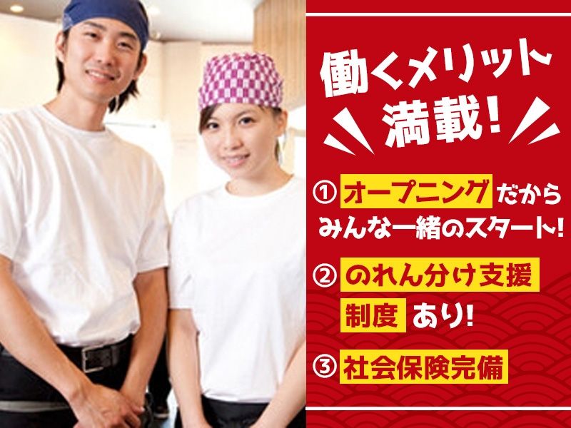 募集求人 本千葉にラーメンショップ◯化が1月初旬完全新規オープン!オープニング1期生の正社員を大募集! 職種 新規OPENラーメン店のオープニングスタッフ 雇用形態 正社員 仕事特徴 未経験歓迎 経験者優遇 まかない・食事補助 スタッフ大量募集 オープニングスタッフ 社会保険完備 募集情報 【本千葉にラーメンショップ◯化がついに上陸!1月初旬完全新規オープン!】あなたもオープニングの正社員スタッフとして一緒に働きませんか!◆未経験OK!◆調理経験不問!◆みんな一緒にスタートです! <正社員/オープニングスタッフ募集> 2026年1月初旬、本千葉に新規オープン 【ラーメンショップ○化 本千葉店】 地域に根付き、長く愛されるお店づくりを 目指し、 オープニングから一緒に スタートしてくれる 正社員・一期生メンバーを募集します。 新規開業だからこそ、全員が同じ スタートライン。 経験の有無に関わらず、意欲と姿勢次第で 着実に 成長できる環境が整っています。 ■ 募集職種 ・仕事内容 【調理・ホールスタッフ】 ・ラーメンの調理業務 (マニュアル・レシピ完備/未経験OK) ・食材の仕込み、衛生管理 ・接客対応、ホール業務全般 ・店舗運営に関わる業務 「ラーメン店=体力勝負」という イメージを 持たれる方も多いかも しれませんが、当店では 分業制を 導入し、仕込みから調理まで 無理なく 働ける体制を整えています。 未経験の方でも安心して 長く活躍できる環境です。 ■ キャリアアップ・独立支援制度 入社後は基礎から丁寧に学べる 研修を実施。 調理・接客・店舗運営を 一通り経験しながら、 リーダー、店長へと 段階的なステップアップ が可能です。 また、将来的に独立を目指す方には **のれん分け制度(独立支援制度)**も ご用意。 仕入れルート、店舗マネジメント、 経営ノウハウまで、 将来に必要な知識を 実践を 通して身につけられます。 「いつか自分の店を持ちたい」 その想いを本気で支援します。 ■ 働きやすい待遇・環境 ・社会保険完備 ・各種手当あり ・無料まかない付き (ラーメン以外のメニューもあり) ・昇給制度あり (努力や成果を正当に評価) スタッフが安心して 長く働けるよう、 労働環境づくりにも力を入れています。 休日や勤務時間の調整、 ライフステージに 合わせた 働き方もお気軽にご相談ください。 ■ 求める人物像 ・飲食業界に未経験から挑戦したい方 ・誠実に仕事へ向き合える方 ・将来のキャリアアップや独立を 目指している方 ・チームワークを大切にできる方 経験は問いません。 必要なのは 「やってみたい」という 前向きな気持ちです。 ■ メッセージ ラーメンショップ○化 本千葉店は、 ただ働くだけの場所ではありません。 一杯のラーメンでお客様を笑顔にし、 仲間と一緒にお店を育てながら、 自分自身も成長していける職場です。 新しい環境で腰を据えて働きたい方。 将来の夢を本気で叶えたい方。 私たちと一緒に、 新しい一歩を踏み出しませんか。 その他 【事業内容】 ラーメン店 関連ワード:飲食店、店長、ハローワークで仕事探し中の方へもおすすめ