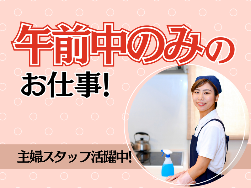 求めている人材 ✅未経験歓迎 ✅学歴・資格・経験不問 *女性スタッフ活躍中 *中高年・ミドル・シニア活躍中! *久しぶりのパートもOK! \こんな方にピッタリ/ ■午前中だけ働きたい方 ■近所でアルバイト探し中の方 ■健康の為にもお仕事したい方 ■モクモクと集中して働きたい方 その他、 マンション清掃やビル清掃、 調理補助や軽作業などで お仕事探し中の方にもおすすめ!