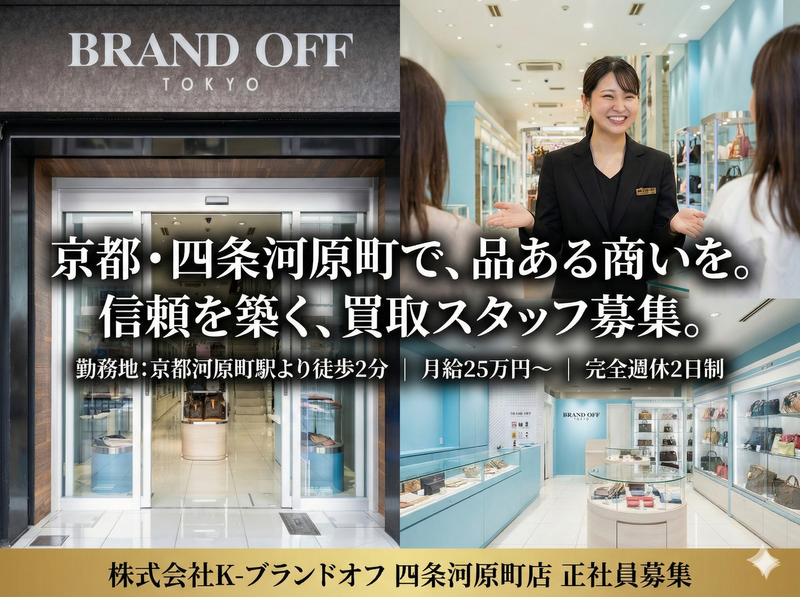 ブランド買取スタッフ/賞与あり/完全週休2日制/社会保険完備/京都市中京区