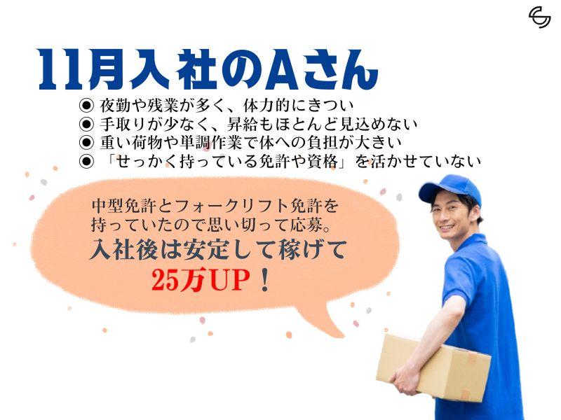 仕事内容: フォークリフト資格を活かして、正社員として安定勤務! 毎日15時退勤・再配達なしの企業向け固定ルート配送で、月40万円以上も可能です。 未経験スタートも歓迎!先輩の横乗り研修で安心して始められます。 ◉仕事内容 企業様向けの固定ルート配送をお任せします。 配送先は法人のみで、1日5件。再配達は一切ありません。 積み込みはフォークリフト中心で、重い荷物を手で運ぶ作業はほとんどなし。 未経験の方も、先輩が横乗りで丁寧に教えます。 ◉この仕事が選ばれる理由 - 固定ルートで安心:不在・再配達なしで焦らず運転 - 体力負担ほぼゼロ:積み込みはフォークリフト中心 - 15時退勤:家族や趣味、副業の時間も確保 - 未経験歓迎:横乗り研修で安心スタート -正社員ならではの安定:給与・雇用の安心感あり ◉1日の流れ(例) 5:45 車庫に出勤・トラック乗り換え 5:55 倉庫でピッキング・積み込み(フォークリフト使用) 6:30 出発(1日5件/神奈川・東京23区) 15:00 配送終了 → そのまま帰宅 ◉先輩スタッフの声 Aさん(倉庫作業から配送に転職):「倉庫作業では毎日立ちっぱなしで疲れていましたが、固定ルート配送で1日5件だけ。焦らず安全に運転でき、体もラクです。」 Bさん(製造業勤務から転職):「残業続きで生活が不規則でしたが、今は15時退勤。収入は上がり、生活リズムも改善されました。家族との時間も増えました。」 ◉応募の流れ 面接から最短3日で勤務スタート可能。 「話を聞くだけ」も大歓迎!