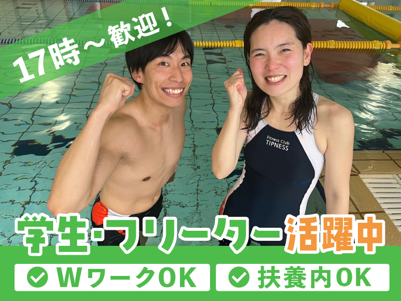 仕事内容 ⭐夕方×短時間で稼ぎたい方必見⭐ 週1日~&1日3時間~シフト柔軟対応中◎ 特に、17時以降勤務できる方は大歓迎♪ ✅うれしい!マックス時給1500円✨ ✅スタッフ特典▶施設を無料で利用可能 ✅髪もネイルもピアスも…オシャレOK! ✅大学生バイトさん~50代まで活躍中♪ \こんな方にもピッタリのお仕事/ 「学校終わりの開いている時間で働きたい」 「本業が終わってからの空いた時間 運動がてらちょこっと働きたい」 …etc ………………………………………………… 水泳を通して子どもの成長をサポート!  ̄ ̄ ̄ ̄ ̄ ̄ ̄ ̄ ̄ ̄ ̄ ̄ ̄ ̄ ̄ ̄ ̄ ̄ ティップネスのキッズレッスンのコーチ として、お子様向けのスイミングクラス を担当していただきます。 ❏簡単な水泳指導やプール監視などの業務 ❏対象…乳児・幼児〜小学生 ⏩未経験の方は… サブコスタッフからスタート! 経験豊富なコーチがしっかりサポート♪ ご安心ください! ⏩経験がある方は… 即戦力として活躍可能! ご希望に応じて、体操クラスの担当も◎ ………………………………………………… ╭━━━━━━━━━━╮ ✧コーチ代表より一言!✧ ╰━v━━━━━━━━╯ 運動の基本は、自分の思いどおりに 体を動かせることにあります。 プールという特別な環境の中で、 泳ぎ方を学ぶだけでなく、 さまざまな動きを取り入れながら、 体を動かすことの楽しさを 感じられるような指導を心がけています。 子どもたちの 「楽しい!」 という気持ちは、集中力を引き出し、 目標を達成するための 大きな原動力になります。 さらに、みんなで練習することで、 少しずつ集団行動にも慣れ、 優しさや思いやりなどの 大切な心が育まれていきます。 ………………………………………………… ╭━━━━━━━━━━╮ ✧ここで身につくスキル✧ ╰━v━━━━━━━━╯ ★基本的な接客スキル ★水泳指導やプール監視の知識・技術 ★お子様の特性に合わせた臨機応変な対応力 ★子どもたちへの説明や補助の方法 …………………………………………………