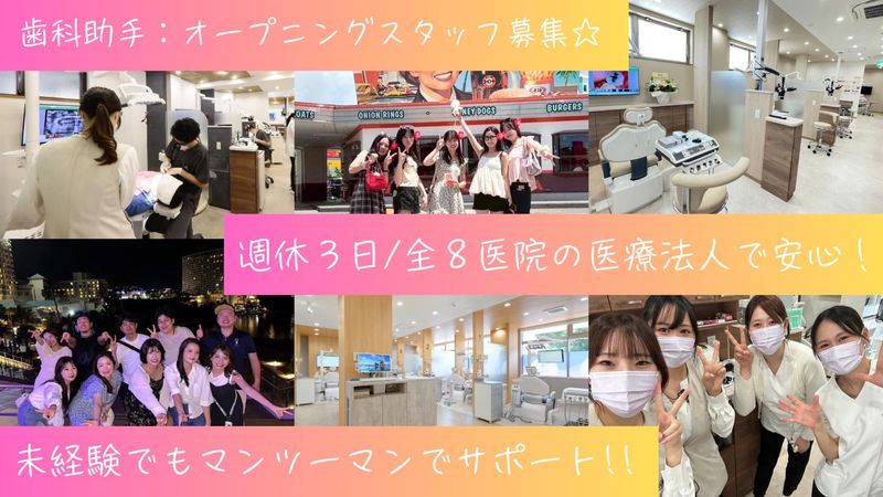 仕事内容 ////////////////////////////////////////// ~家事や育児と両立したい方、 プライベートも大切にしたい方必見!~ ////////////////////////////////////////// はじめに… □ 今の職場では、 なかなか自分のペースで働けない… □ もっと柔軟なシフトで、 プライベートの時間も確保したい… □ アットホームな職場で、 のびのびと働きたい… そんな方、ぜひご一読ください。 |◤ この求人のポイント ◢|  ̄ ̄ ̄ ̄ ̄ ̄ ̄ ̄ ̄ ̄ ̄ ̄ ̄ ̄ ̄ ̄ ✅残業なしでプライベート充実! 自分の時間をたっぷり確保できるから、 趣味や家族との時間、リフレッシュなど、 ワークライフバランスを大切にしたい方に ぴったりの環境です。 ✅福利厚生も充実 *矯正、ホワイトニング、ボトックス 各種社員割引適用あり◎ *一人暮らしを支援するための 住宅補助もあり! ✅駅チカ【徒歩1分】の好立地! 最寄りの駅からたった1分。 雨の日も暑い日も、 通勤ストレスとは無縁です。 ✅あたたかい職場です! 当院は、"丁寧で優しく清潔!"と 評判の地域密着型の歯科医院です。 患者様はもちろん、 スタッフ同士も笑顔で過ごせる、 あたたかい雰囲気の職場です。 |◤ 具体的な仕事内容 ◢|  ̄ ̄ ̄ ̄ ̄ ̄ ̄ ̄ ̄ ̄ ̄ ̄ ̄ ̄ ̄ ̄ ●受付対応 ●診療器具の準備・片付け ●洗濯・清掃 ●診療補助 などをお願いします。 「診察補助」というと 難しそうに感じると思いますが、 患者さんにエプロンをかけたり 使用した治療器具の洗浄など、 医療行為にならない範囲の サポートをお願いします。 初めての方でも、 先輩社員がサポートするので、 安心して働いていただけます! |◤ 未経験者歓迎 ◢|  ̄ ̄ ̄ ̄ ̄ ̄ ̄ ̄ ̄ ̄ ̄ ̄ ̄ ̄ ̄ ̄ まずは笑顔で丁寧に対応できればOK! 歯科助手や医療事務経験がなくても 応募可能です。 ご入社後は、先輩スタッフが 丁寧にお教えいたしますので 安心してください。 |◤ 当院について ◢|  ̄ ̄ ̄ ̄ ̄ ̄ ̄ ̄ ̄ ̄ ̄ ̄ ̄ ̄ ̄ ̄ 海をイメージした綺麗なクリニックで、 地域に根ざした歯科医療を提供する、 アットホームな歯科医院です。 私たちは、患者様一人ひとりに寄り添った 丁寧な診療を心がけています。 また、スタッフ同士のコミュニケーションを 大切にし、笑顔があふれる、働きやすい 環境づくりにも力を入れています。 また、仕事以外ではスタッフが楽しめる 様々な福利厚生を用意しております! 例)クルージング、釣り大会、BBQなど 地域の方々を始め、多くの患者さんと ご縁を頂ける歯科クリニックへと 成長していくために、スタッフの皆さんと 一丸となって診療していきたいと思います。 ぜひ、ご応募お待ちしております。