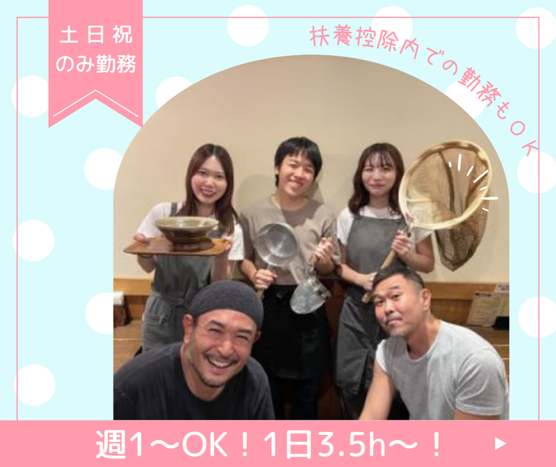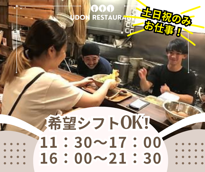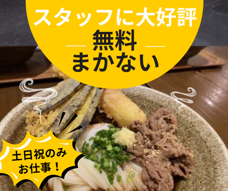 土日祝限定&3.5h~・Wワーク・扶養内OK!うどんが賄い!