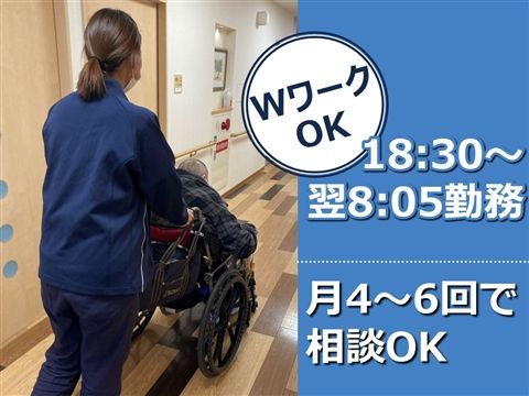 月4~6回で勤務相談可能☆夜勤専従の募集◎副業も可能★勤務は18:30~翌8:05!【羽曳野市、住宅型有料老人ホーム、介護職、夜勤アルバイト】