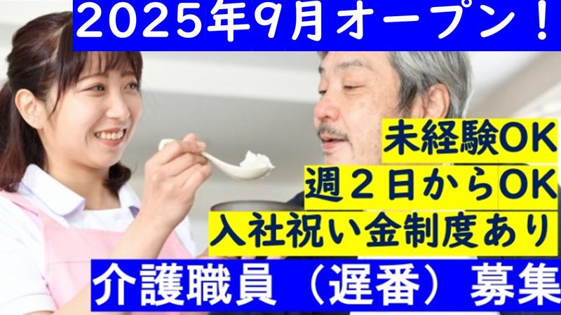 【アピールポイント】 サービス付き高齢者住宅の介護スタッフ(遅番)募集! ■週2日からOK! ■オープニングスタッフ! ■入社祝い金制度あり! ■資格取得支援制度あり! ■未経験・ブランクある方歓迎!