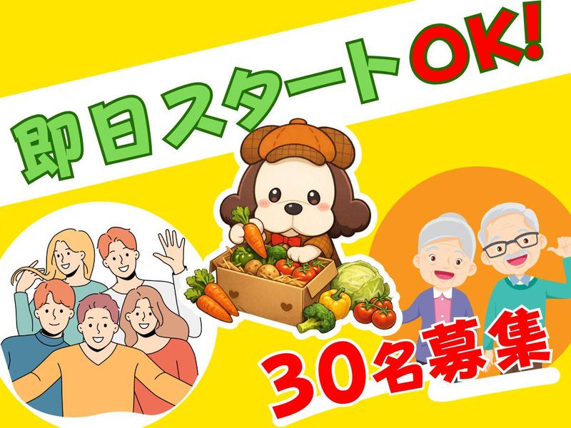 仕事内容 <未経験でもスグにできるシンプル作業> ✅土曜は時給30円UP×日曜・祝日は時給50円UP✨ ✅究極の自由シフト!あなたの希望を最優先! ✅1ヶ月や2ヶ月の短期OK!勤務開始日はご相談ください♪ ✅30名の大量募集!友達同士での応募もOK! ✅日払いOK!(規定あり) \6月末までの間で1ヶ月や2ヶ月短期OK!自由シフト/ 即日スタート、3月中旬スタート、4月スタート、 お試しで1ヶ月間だけ働きたい!など、 ご希望の勤務期間で働いていただけます! 毎年人気の短期バイトが今年も登場! 倉庫内で、スーパーなどに出荷される新鮮な野菜を、 箱に詰めたり、段ボールを組み立てたりする、 とってもシンプルで簡単なお仕事です! 【具体的なお仕事】 ◎野菜を丁寧に箱へ詰める作業 ◎梱包用の段ボールを組み立てる作業 など <安心ポイント> ◎特別なスキルは必要ありません。毎年未経験からスタートする方が多数! ◎学生さんから主婦(夫)さん、フリーター、シニア世代まで幅広く活躍しています。 ◎服装自由!いつもの慣れた格好でリラックスして働けます♪ 特別なスキルや経験は必要ありません。学生さんのアルバイトデビューから、お仕事にブランクのある方、まだまだ元気に働きたいシニア世代の方まで、軽作業のパート経験がある方など、皆さんを歓迎します✨ この春高校を卒業された、4月からの新大学生・専門学生の初バイトにもぴったり! ※就業後、上記業務から変更はありません。 ///////////////// <電話でのお問い合わせ> *0120-377-017* までお問い合わせください。 /////////////////