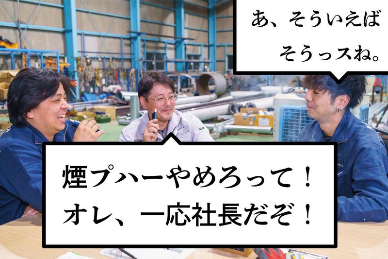 仕事内容 【求人のポイント】 ✅学歴一切不問 ◆代表の神谷は… ・少年時代はガキ大将でヤンチャ坊主 ・中学卒業後、すぐに溶接配管の仕事をスタート ・今ではすっかり家族とゆとりの生活 ◆社員は… ・元ヤンチャ坊主がたくさん ・今はみんなまるーく穏やか ・仕事に一生懸命 ✅会社っぽくない会社 ◆仕事が終わったらみんなでトランプ!? ◆タバコ片手におしゃべり ◆「学校みたいな雰囲気」という声がたくさん ✅仕事は楽しく、誇らしく ◆他にはできない仕事もたくさん ◆「自分たちだからできる」という誇りを感じられます ー 【具体的な仕事内容】 いわゆる現場監督のお仕事です。管工事施工管理とか、ただ単に施工管理と呼ぶこともあります。専門的なことは入社後にすべて教えます。まずは難しく考えずに飛び込んできてもらえると嬉しいです。 (1)仕事の役割 工場や商業施設などの配管工事がスムーズに進むよう、社長の神谷と従業員の架け橋になります。例えるとしたら、部活動のマネージャーです。 「備品がなくなっちゃった」→「買ってきますね」 「工事が難しくて応援がほしい」→「社長に相談します」 など、現場で工事をする人の相談ごと、困りごとを社長に伝えて解決する仕事です。研修制度充実。丁寧に教育致しますので安心して働けます。 (2)工事は一切しません あなたが自ら手を動かして溶接作業や工事をすることはありません。基本的に工事は専門の技術者がすべて進めます。 (3)案件の種類は? 短いものは1日で終わります。長い案件は1年以上。あなたの成長度合いに応じて仕事をお任せしますね。 ー 【会社について】 工場、大型商業施設などの配管工事を手掛けています。私たちのように溶接配管が専門なのはほとんどありません。とにかく珍しい会社です。 ✅配管工事とは? たとえば夏。ショッピングモールに入ると、クーラーが効いて涼しいですよね?建物全体が涼しくなるよう、涼しい風の通り道になる金属パイプを取り付ける工事です。空気以外にも、水やガスなどの通り道をつくっています。 ✅強みは? 難しい工事をやり遂げる技術力だけでなく、社員一人ひとりの人間性自体も強みです。お客さまからは「話しやすいから何でも相談できる」「快く対応してくれるので助かる」などの声がたくさん!