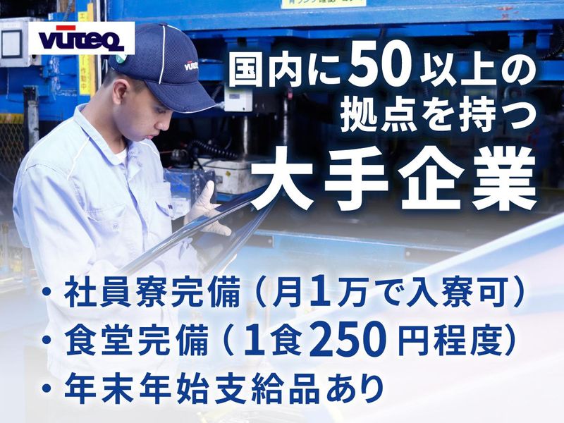仕事内容 有名ガラスメーカーの工場で働く、 製造スタッフ または 製造補助スタッフを募集。 国内に50以上の拠点を持つ大手企業で、 安定と新たなキャリアを手にしませんか。 - 【 具体的な仕事内容は… 】 業務用ガラス製品の製造工程の中で、以下のうち、どれかをご担当いただきます。 実際に担当する工程を決める前には、各業務の内容を一つずつご説明しますので、「自分には絶対できない ! 」と思うような作業を無理やりお願いすることはありません。 初めて工場に入る前には、場内ルールの説明会も実施。責任者や管理者がそばについてサポートしますので、製造業デビューの方でも安心して始めて頂けます。 (A) ガラスの検査・梱包 ラインに搬送されてくる一般建築用ガラスを目で見て、キズ・泡が入っていないかチェック。OKのガラスは専用の台に積んで蓋をし、梱包していきます。3 ~ 4人単位でチームを組んで進める部門です (B) 運搬 フォークリフト・天井クレーンなどを使って、(A) で梱包されたガラス類を台ごと運び、指定の置き場やトラックの荷台へ移動させる作業です。リフト免許・クレーン免許は、入社後に会社費用で取得できます。 - 【 一度入社したら、大切な仲間です 】 ・ビューテックの現場で働き始めた方の多くは、その待遇にビックリされます。特に年末は、1年間一緒に頑張ってくれた仲間に感謝の気持ちを示すため、特別な支給品をご用意。その内容は毎年少しずつパワーアップしています。 ・中には「まだ仕事も覚わっていないのに、こんなに立派なお肉やお餅を貰ってしまっていいんでしょうか…」「新人の自分の提案まで、現場に反映してもらえるんですか !」と恐縮される方もいらっしゃいますが、一緒に汗を流しているなら、社歴はあまり関係ないと私たちは考えています。 ・頑張ってくださる方へは、ご本人が望まれるのであればキャリアアップを検討しますし、「役職者は自分には荷が重いから…」と、現場メンバーとして長年ご活躍されている方もいらっしゃいます。キャリアを押し付けるのではなく、一人ひとりの仲間が望む未来に向かって、一番よさそうな道を提案できる会社でありたいと思っています。 ・志望動機も正直、あまり気にしていません。面接で語られる言葉も「家が近いから」「お金が必要だから」「一度仕事を辞めてしまったけれど再び働きたい」…など、皆さんさまざまです。大切なのは応募の理由よりも、あなたがここで何を得たいかです。まずは一度お会いして、お気持ちを聞かせて頂けましたら嬉しいです。 ・来春入社OK!入社時期はご相談ください。