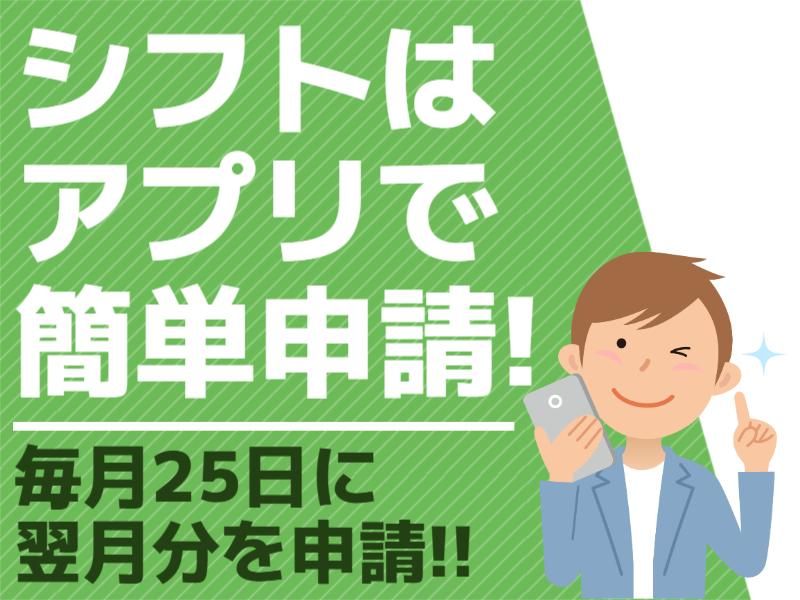 休日休暇 週休2日、シフトによる ※シフトはアプリ送信なので自分の都合である程度のシフト決定可能です <長期休暇も柔軟に対応> 帰省、旅行などでの長期休暇希望も対応可能 GW・夏期・年末年始のシフトもお気軽にご相談下さい 働きやすさや長期で勤務していただけるようにしています