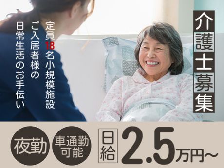 \人気のグループホーム/定員18名★小規模施設|日給2万5250~2万6750円|週2回~|車通勤可