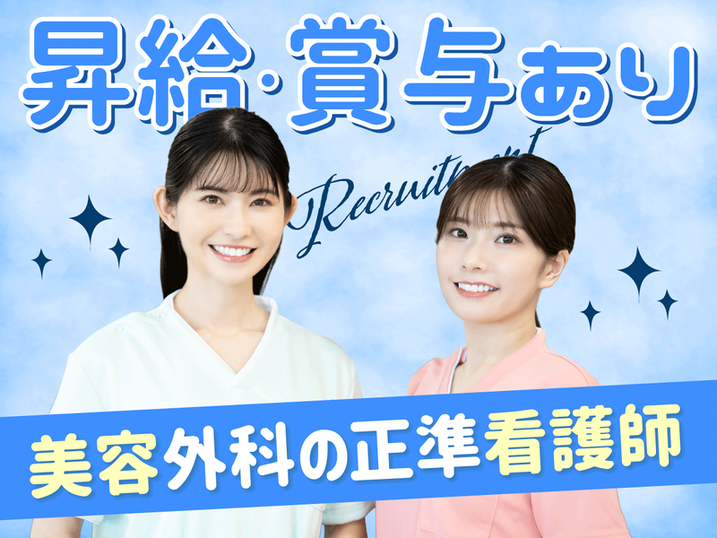 求めている人材 【必須条件】 ◆看護師または准看護師の 資格をお持ちの方 ◆45歳以下の方 (長期勤続による キャリア形成のため) ✨学歴不問! ✨ブランクOK! ✨実務未経験OK! 【こんな方にピッタリ◎】 ◆正看護師・准看護師資格を 活かして美容外科で働きたい方 ◆患者様に寄り添い、 安心・快適な時間を提供できる方 ◆実務未経験でも、学ぶ意欲や 丁寧な対応を大切にできる方 ◆ワークライフバランスを 重視した働き方を希望する方 ◆安定して長期勤務したい方 実務経験が浅い方や、 ブランクがある方も大歓迎! 先輩スタッフがサポートしますので、 安心してお仕事復帰できます◎ 年齢の条件と理由:あり(例外事由3号のイ・45歳以下 (長期勤続によるキャリア形成のため))