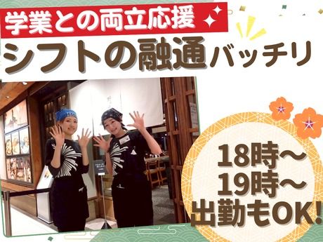 資格 <春から新大学生さん大歓迎!> ■学生さん大歓迎! ■学歴・年齢不問 ■高校生歓迎 ■経験不問 ■未経験者可 ■未経験者歓迎 ■経験者歓迎 ■長期できる方 <こんな学生さんも大歓迎!> ■学費や生活費を自分で稼ぎたい ■授業終わりに短時間で働きたい ■テスト期間はしっかり休みたい ■バイト未経験だけどチャレンジしたい ■飲食店バイトに興味がある ■駅近で通いやすい場所がいい ■友達も作りたい