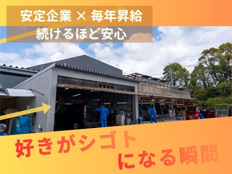 職場環境 久留米方面などからの通勤も可能な立地です。車に囲まれた環境なので、車好きの方には特に楽しめる職場です。 昇給は基本的に毎年あり、未経験スタートでも、コツコツ続ければ着実に収入アップが目指せます。研修はマンツーマン中心で、分からないことはすぐ聞ける環境。