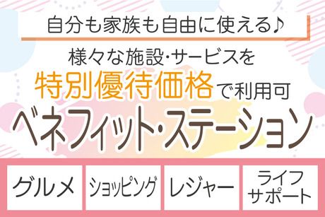 【保険制度】 雇用保険、労災保険、健康保険、厚生年金 待遇・福利厚生 【福利厚生】 ・社会保険完備 ・交通費全額支給 ・週払いOK(規定) ・有給休暇 ・制服貸与/制服での通勤OK ・髪色自由 ・車通勤OK ・喫煙所あり ・紹介キャンペーン ※ご紹介くださった方1名につき6万円進呈(規定) 【その他福利厚生】 ・定期健康診断 ・キャリアアップ支援制度 ・ストレスチェックの実施 ・子ども手当あり ・結婚、出産、入学祝い金あり ・退職金制度あり ※各々、社内規定に基づく ★トーコーで働くと利用できる福利厚生サービス「ベネフィット・ステーション」! グルメやレジャー、ショッピングだけでなく 育児や介護などライフイベントに関わるものまで、 【約140万件以上】の各施設・サービスを特別優待価格にてご利用いただけます。 スタッフさんはもちろん、ご家族の方もお好きなだけ利用できます。